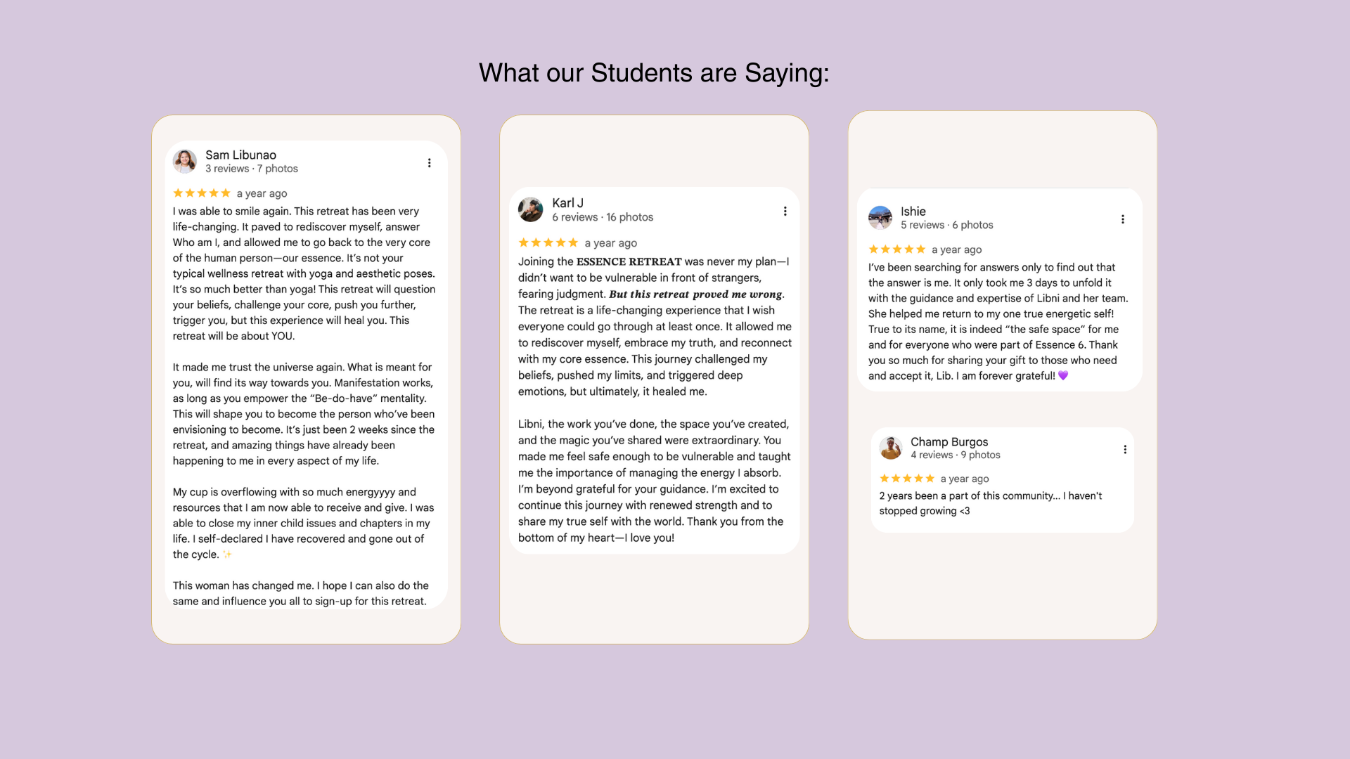 It’s more than just a retreat. We work on the mind, body, soul, and cellular level of consciousness for us to remember who we truly are.
