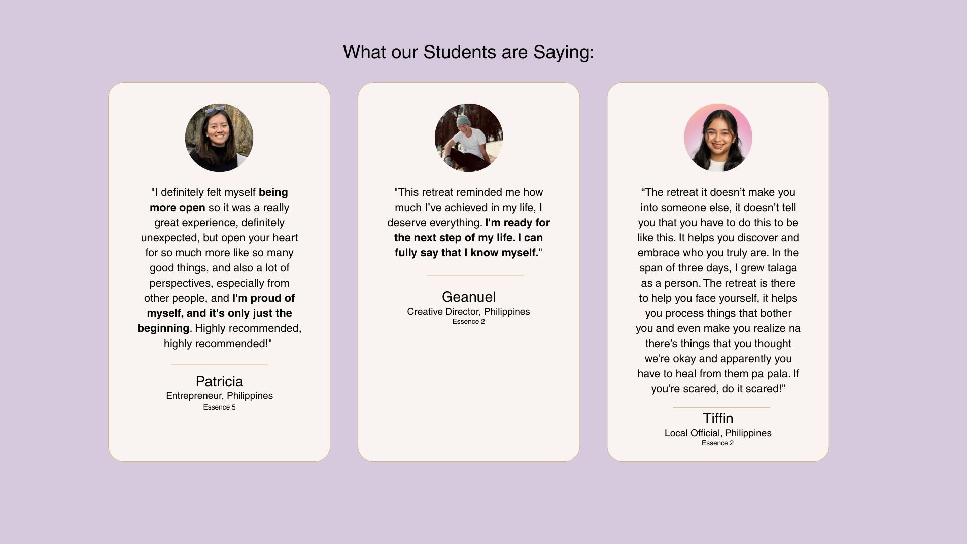 That’s the goal of Essence Retreat, to begin with,to help you walk away surprised by the new you.